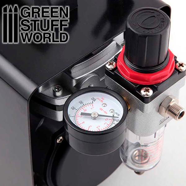 Trykmåleren viser maksimalt tryk og arbejdstryk, samtidig filtreres også vandet der er i luften væk, som er meget brugt til hobby- eller modelmaling luftforsyning. Lav vægt gør det også nemt at transportere.
