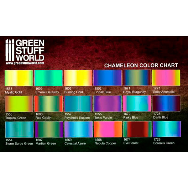 Den semitransparent kamæleonmaling kan også påføres over andre basecoat farver, for at opnå forskellige farveskift effekter.